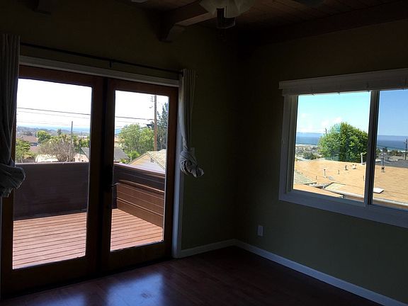 Executive Home with Panoramic Ocean Views from living room, kitchen, dining area, front deck and master bedroom. Laminated & tiled flooring throughout, breakfast nook, new cabinets, fireplace, single car garage, storage shed, patio, drought-scaped entire yard. Possibility for home office, clean, roomy and beautiful. Property has custom paint, beautiful fixtures exceptional ocean views and more. two rooms downstairs with bath. Showing by appointment only. No Pets. Washer Dryer hook up down stairs. American Property Services typically does month to month tenancy, however we will negotiate lease terms.