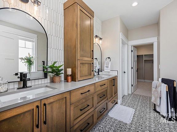 Step into elegance and luxury in the heart of Biscotti Estates, where this Parade of Homes winner redefines modern living. With 4 generously sized bedrooms, this home offers space, comfort, and countless custom upgrades. The inviting living room, complete with built-in cabinetry and a cozy gas fireplace, flows seamlessly into the award-winning gourmet kitchen. Here, you'll find high-end finishes, double oven with built in microwave, and a 5-burner cooktop, perfect for the avid chef. The expansive primary suite is a sanctuary all its own, earning recognition for its stunning design. Outdoors, a covered patio, firepit, and custom drinking fountain create the ultimate setting for year-round enjoyment. With its exceptional design, this move-in-ready home invites you to create lasting memories.