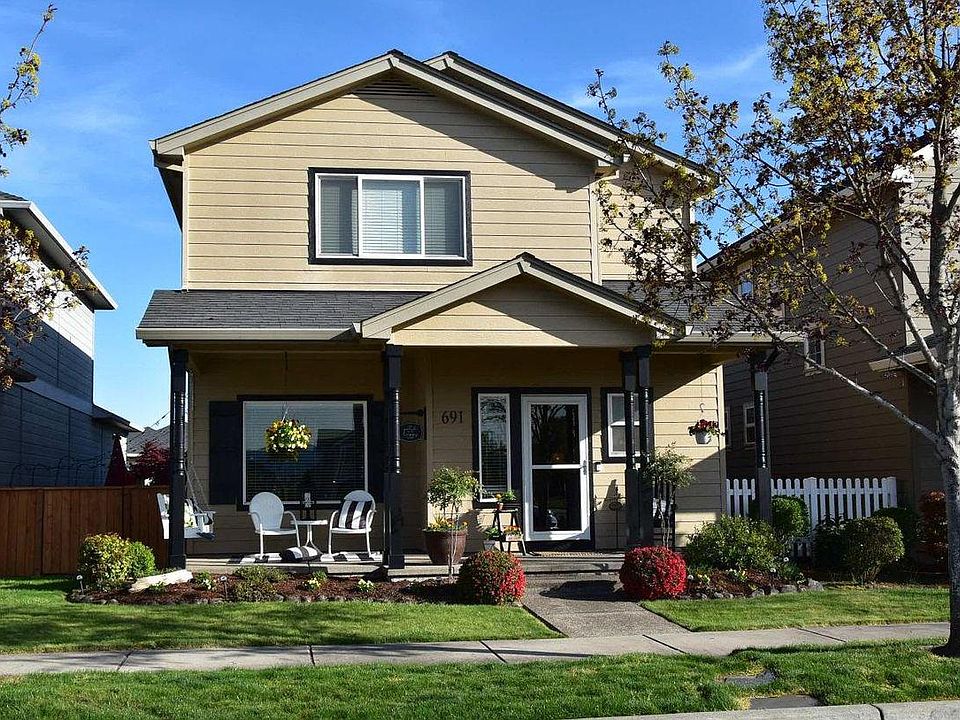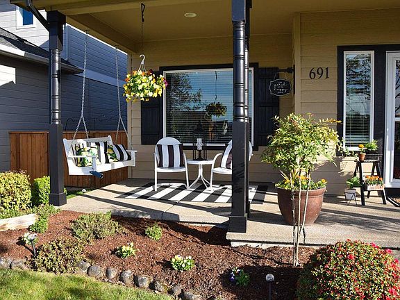 Curb Appeal! This Beautiful Home is located in the desirable Twin Creeks Development. The Front porch with hanging swing is truly inviting. From the porch, you are looking out onto the new multi-activity community Park. Entering the home youll be impressed with the spacious front Living Room with high ceilings and large windows which give a light & bright environment. Hardwood floors in the dining and kitchen. The Kitchen offers custom white cabinets, stainless appliances, Gas range, tiled backsplash, deep farm style sink, counter eating, pedestal lights. Laundry room w/ample cabinet storage and access to garage. The Half bath is on the main floor. Upstairs: There is a Spacious Master Bedroom w/ Vaulted ceiling and walk-in closet. Master bath has a double sink vanity. Theres also a sizable full hall bathroom for the other 2 bedrooms. There is a well maintained side yard for family and entertaining. Theres even a 2nd Park in back! Table Rock Views! This is a must tour property