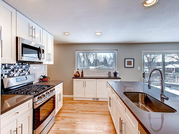 Beautifully remodeled ranch home! Fenced supersized yard on corner lot. his designer kitchen includes all new high-end gallery appliances, stylish back splash tile, grey quartz countertops, and white shaker cabinets with soft close drawers. Tons of storage with extra cabinets on backside of the peninsula. There are 3 bedrooms on the main level (including a master suite). The finished basement has 2 conforming bedrooms, bright living room, beautiful full bathroom & big laundry room with tons of extra storage space. Nice size deck made of composite material so no maintenance! Huge yard with two fenced in areas.