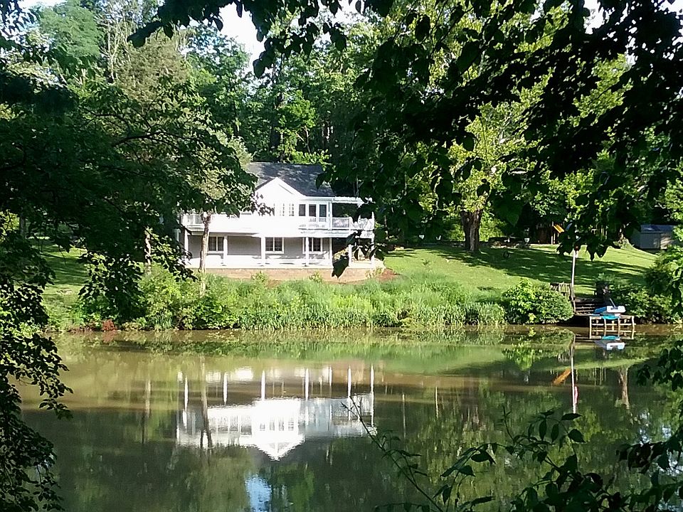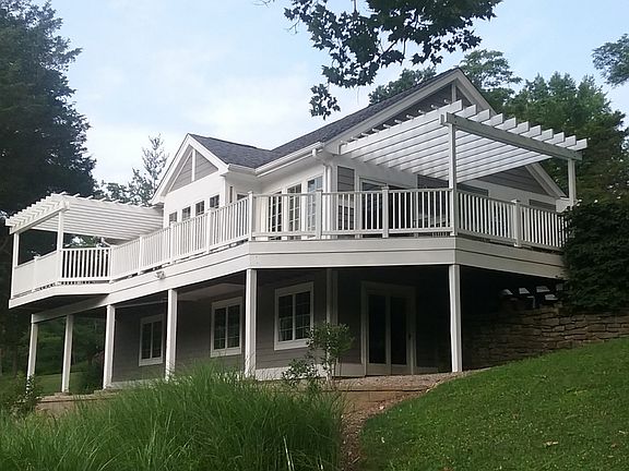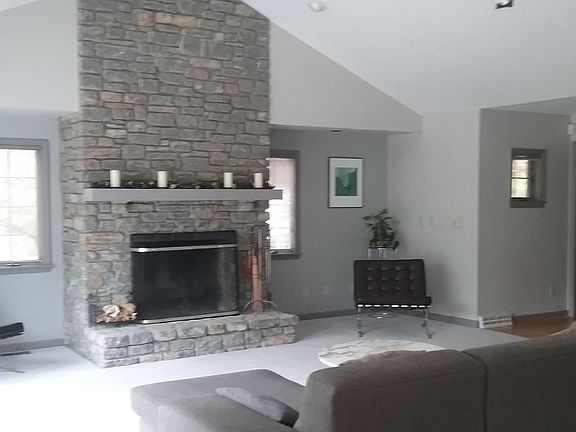 Zestimate valuation is not accurate. Recent appraisal is $750k. It has open floor plan, recent mstr bath redo w/ soaker tub, tile, quartz tops kitchen & mstr bath, gas cooktop and electric double oven, stone w/b fireplace, brick gas fireplace in finished lower level, wrap around deck w/ 2 pergolas, nat'l gas grille, lower level walkout w/ wet bar, includes 1.6 acre stocked lake w/ dock, 5 zone sprinkler system draws from lake, 20x40 double door pole barn w/ concrete floor, and 6.7 total acres. Lots of storage in many closets and cabinets. Tandem 2 car garage has front & rear garage doors.
