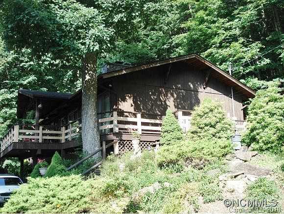American Timber Home. Immaculate 3 bedroom, 3 1/2 baths in a gated community. Amenities include golf course, tennis, swimming, horse back riding and skiing. Vaulted, beamed ceilings and interior done in rare Northern Cedar throughout main level. rock fireplace. covered deck. large master on main with guest bedroom and bath downstairs. Adjoining lot may also be purchased. Great full time or vacation home. 30 min. to Asheville.