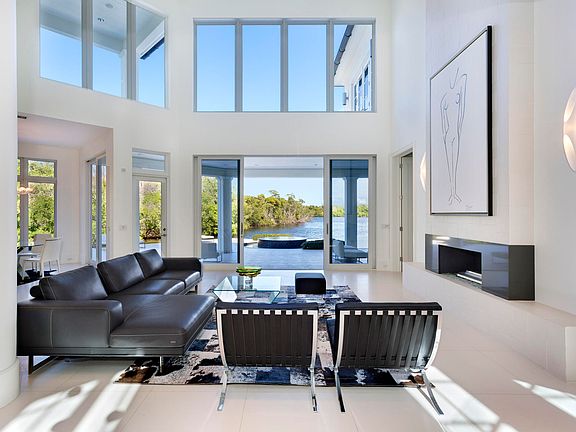 Gorgeous protected views overlook the Deepwater to the Intracoastal and natural parklands from this beautifully landscaped Modern-inspired estate on 185+/- feet of shoreline, one property from the point, with yacht dockage plus a floating dock for other water craft. Outdoor entertaining is at home in the resort-like waterfront haven featuring a saltwater heated infinity pool with overflow spa by the open-air living room with a fireplace, summer kitchen, and retractable screens. The adjacent property is additionally available, giving the option to create a sprawling compound on 300ft of protected dockage just minutes away from Boca Raton Inlet.