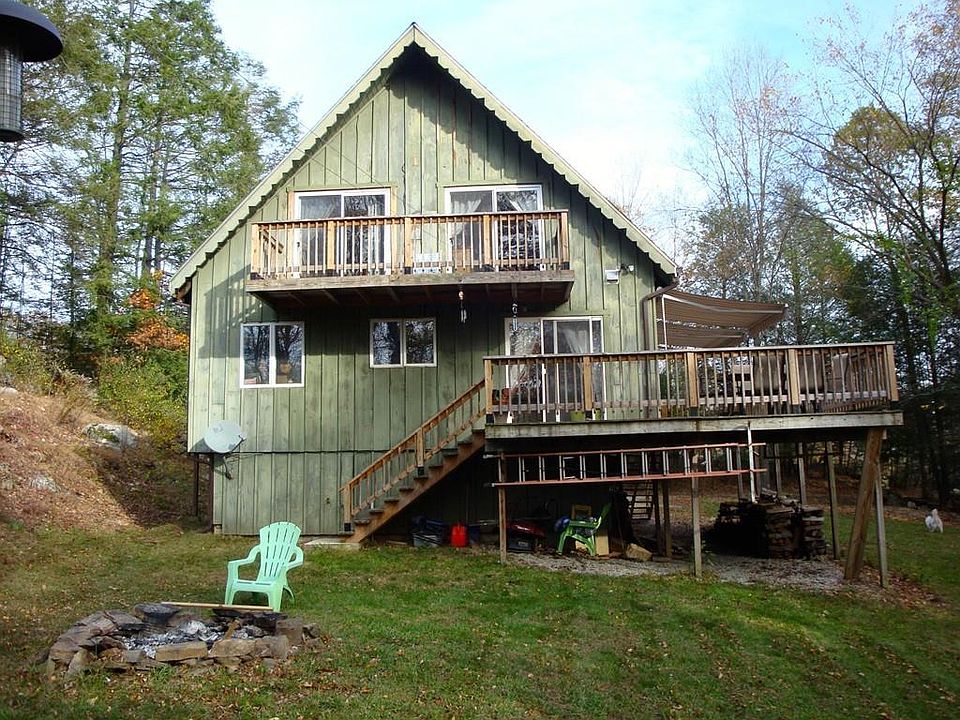 BEAUTIFUL, RUSTIC CAPE ON 11.2 ACRES! This home is perfect for the buyer who is looking for privacy but easy access to town. Close to shopping, restaurants, & major routes. The home is surrounded by woods, a babbling brook, & nature! Buyers will love the huge wrap around deck & fire pit. The interior of this home has a cabin feel with the soaring cathedral wood ceiling in the living room and wood stove, that will stay. There are plenty of contemporary elements such as recessed lighting, fully applianced kitchen with white cabinets and open floor plan. This home is perfect for entertaining, inside and out! There is a spacious full bath & convenient first floor bedroom/office. The 2nd level has an open balcony walkway that overlooks the living room. There are 2 good sized bedrooms with double closets & sliders that open onto a 2nd story balcony w/ gorgeous views. Lot has approx 572' of frontage on Guelphwood Rd. Land could possibly be subdivided or enjoyed as one lot.