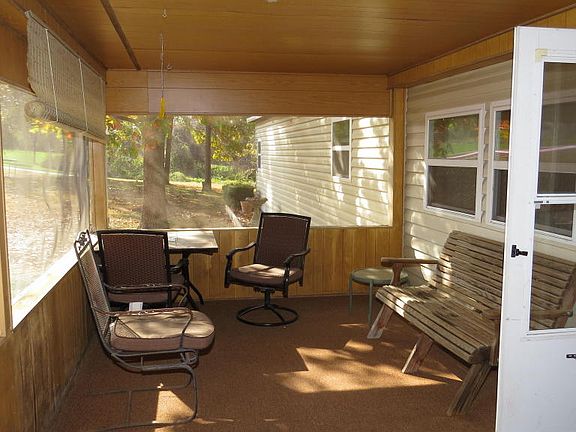 A gorgeous country setting with mature trees on 2.6 acre corner lot, outside of city limits. Perfect place to enjoy summer nights on the enclosed screened in porch. This cozy home consists of 2 bedroom, 1.5 bath, an office (can be converted into 3rd bedroom) and formal dining room on permanent foundation. Large kitchen boasts birch cabinets, newer appliances including down draft smooth top stove. New flooring and paint throughout! Property has free standing storage shed and detached garage that is 24 x 30 and has electricity, window air conditioner, and wood stove for heat. Call today to see all this property has to offer!*Address can not be found by GPS due to Ozark address. Follow directions above or call listing office. Home is located between Nixa and Highlandville.