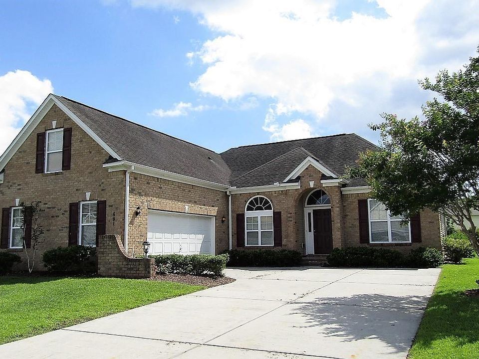 Meadowlands Golf Club - This is a wonderful location in a very popular golf course community. The Belfair model with many upgrades is located on a premium lot with a lovely view across a pretty pond to the golf course. Welcoming entry area has gleaming wood floors which flow into the formal dining room with a round-top-window. 3 bedroom (one could be office or study) are on the main level and a bonus room with closet over the garage could serve as a fourth if needed. A huge living room opens to a Carolina Room with a Catherdral Ceiling and lots of windows. There are 10' ceilings in all the public rooms of the home and the master bedroom has 9' ceiling with a presidential tray and ceiling fan. The master bath has a whirlpool tub with acrylic window over it, glass shower and a walk-in custom fitted closet anyone would love. The kitchen has beautiful 42" wood cabinets with crown on top, solid surface counter tops, side-by-side refrigerator and brand new range and dishwasher. There is a slider to the Sun Room from the kitchen and an atrium door from the Carolina Room to the Sun Room. The side load two car garage gives a nice appearance and has a work bench area and an 80 gallon water heater. This home also has a new roof, a new HVAC and an irrigation system. The community has a clubhouse with outdoor pool, fitness facility and many opportunities to connect with neighbors The many golf courses make the area a golfer's paradise but boaters, fisherman and shell hunters will love it. too. Just a few minutes to beaches, shopping and many nice restaurants. Take a look today.