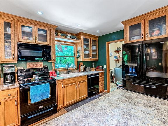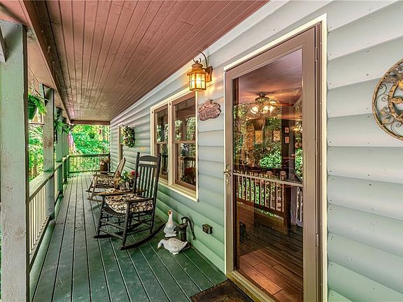 This 3BR, 2BA country/rustic one-level home is 1,400 sq. ft. and sits on 1.32 private wooded acres. From the inviting covered front porch, you enter a great room consisting of a living room, kitchen, and dining area. The master bedroom has an en-suite bath with a separate shower, jetted tub and linen closet. The 2nd and 3rd bedrooms share the 2nd full bathroom, which is also convenient to the living room -- a perfect setup for guests. Just off the kitchen, which has custom pull outs in the cabinets, are two rooms: a large and cozy sun room with French doors leading to the back deck, and a laundry room which has its own deck access, as well as a pantry. The back deck has plenty of space for dining outdoors, lounging and reading, or games and exercise, all surrounded by natural forest. Just off the deck is a picnic table and a recessed fire pit with a fitted grate for grilling. The front yard is a natural garden with bench seating, encircled by a fully looping driveway, and the back yard is filled with green tranquil forest. The north property border (at the far end of the back yard), is a small but picturesque branch / stream, and right on the other side begins the 150+ acres that make up Fightingtown Creek Nature Park, which features 12 miles of hiking and biking trails and is freely open to the public. This beautiful home in a natural setting is less than 10 miles away from the city of Blue Ridge, one of North Georgia's most sought-after destinations.