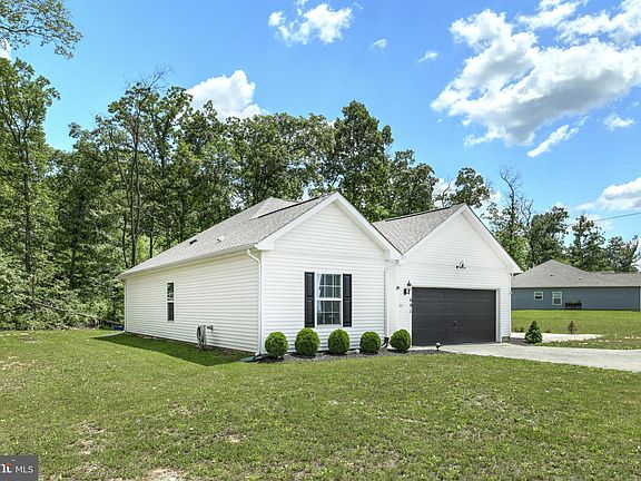 Don't miss out on this 2-year home located in Quarry Oaks. The rancher offers 3 bedrooms and 2 full baths. Enter the front door to the foyer area with the 2 bedrooms and main bath off the left. Each bedroom offers carpet and a closet with recess ceiling light. From the foyer, you will enter the family room which is all open to the kitchen and dining area. The family room has a ceiling fan and carpet. Off the family room is the primary bedroom with carpet and ceiling light, primary closet, and bath with walk-in shower. There is a laundry area with a water heater on the main floor as well. Small but quaint kitchen with pantry, laminate floors, and granite countertops. There are recess lights and all kitchen appliances convey. Right off the kitchen is an eat-in area with a door that leads to a cement patio. The home has double-hung windows and the furnace is in the attic. There is no basement in this home. Enjoy the private patio and yard that backs up to the woods. The property line is in the woods and it is approximately 300 yards from the road to the back line per seller but the buyer agent needs to verify this. There is a cement slab to the right of the house for boat or camper parking. This is in an HOA and I have copies of the docs and rules in the document section. This is a Short Sale. Seller will do no repairs Inspections will be allowed but for buyer purpose only