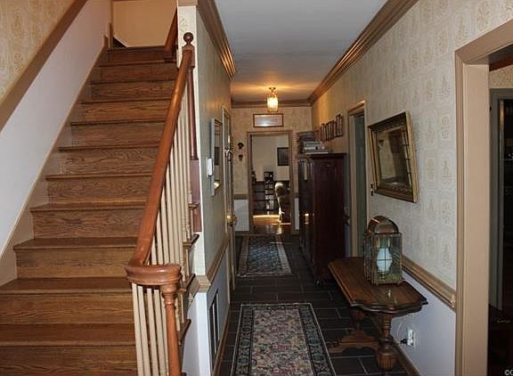 - Interior: Built In Cabinet/Bookcases, Double Vanity, Pantry, Center Hall, 9 Ft + Ceilings, Bay/Bow Window, Eat-In-Kitchen, MBR Bath, Island