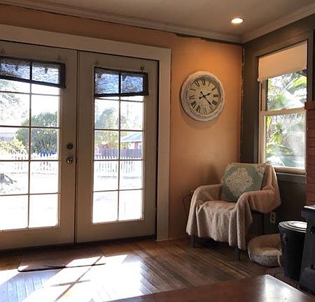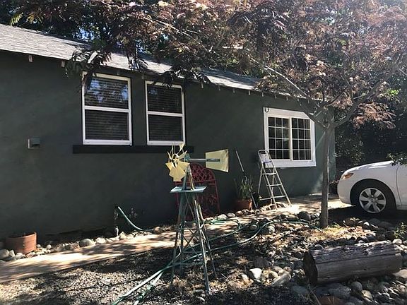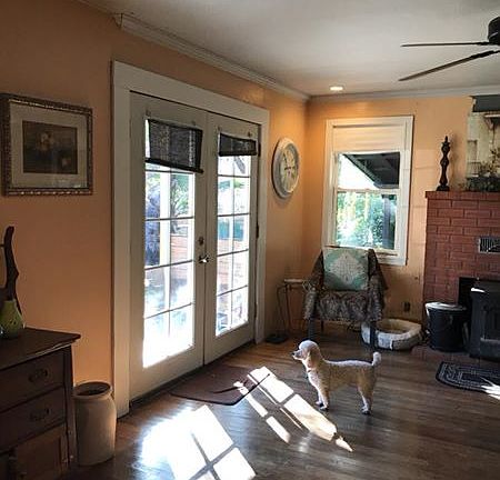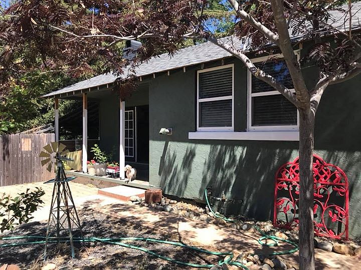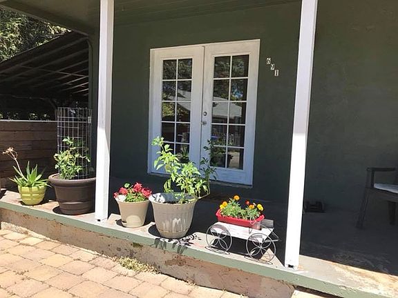Centrally located close to stores and restaurants but feels private and secluded. Enjoy the soothing sound of the waterfall with the koi pond while sitting in the side yard with three covered patios. Enjoy the outdoor kitchen area and the nice sized back yard. Original hardwood floors in two of the bedrooms, hallway, and living room, plus newly remodeled kitchen with oak cabinets, new deep stainless sink new faucet garbage disposal new stainless microwave hood a stainless convection stove, stainless dishwasher and new stainless French door refrigerator bought in Jan of this year which includes the extended warranty. Also, Traffic Master laminate flooring and porcelain tile counter tops makes this a comfy eat-in kitchen. Snuggle up to the warmth of the wood stove in living room on those chilly nights and enjoy the flames while having your morning coffee. Having the attached 1 bed 1 ba apt makes this very versatile for an older child, mother-in-law unit or use as rental potential. Add to that the garage, shed and wood storage makes this a nice little haven in the heart of town.