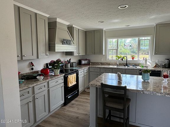 Almost new! Adorable 3 bedroom, 2 bath doublewide home. Open plan living area with laundry room (with sink) conveniently located off the kitchen. The sunny kitchen has an island with barstool seating for entertaining guests while you cook. LVP flooring covers most of the home for easy cleaning. Two (2) bedrooms are carpeted. Spacious walk-in shower in the owner's bathroom. Walk-in closets in each bedroom. Large lot with storage building included. Flower beds are freshly mulched. A must see!