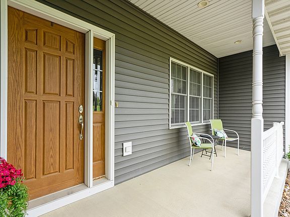 Beautiful home with the feel of country living but on hard surface. Gorgeous kitchen open to dining area and living room with gas firelplace and built-in shelves. Dining room opens to large 2-tier deck with composite flooring, offering a beautiful view of the property. Family room closest to side entrance has laminate flooring with space to relax, watch TV or play games. Large closet has washer/dryer hook-ups available. Inside entrance to double garage allows home access during inclement weather. Home features one bedroom on main level with wood floors, large walk-in closet and bathroom with jet tub and walk-in shower. Additional 1/2 bath on main level. Lower level features 2 additional bedrooms as well as an additional bath with a walk-in shower. Second family room has wet bar and access to covered patio with a near-by firepit to enjoy times with friends and family. Back yard is partially fenced, ready for kids and pets. Single garage has potential for a variet of uses; work shop, storage, game area, etc. With nearly two acres, this property has something for everyone!