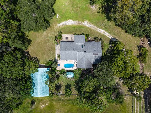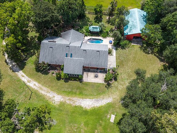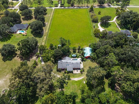 Welcome to this beautiful 5.17-acre gated property, perfectly set up for horses and outdoor living. The land features a large, open pasture with a black board fence and an impressive 8-stall barn complete with a tack/feed room and oversized rolling doors that open directly to the pasture. The home itself offers nearly 3,800 sq. ft. of heated and cooled living space with an open floor plan and stunning custom tongue-and-groove wood ceiling in the main living area. Inside, you’ll find 3 spacious bedrooms, 2 bathrooms, an office/bonus room with its own closet that could easily be a 4th bedroom. Multiple sunrooms and gathering spaces—ideal for entertaining, relaxing, or hosting family and friends. The roof is just 7 years old, the hot water heater is brand new, and the HVAC system is approximately 3–4 years old, offering peace of mind on the major systems. Step outside to enjoy multiple patio areas surrounding the home, a gazebo perfect for gatherings, and a fiberglass inground pool. This property is truly a rare find in such a desirable area. With some TLC and updates, this home has incredible potential to be transformed into an equestrian estate or a dream retreat with significant built-in equity. Don’t miss the opportunity to make this unique property your own—schedule your showing today!