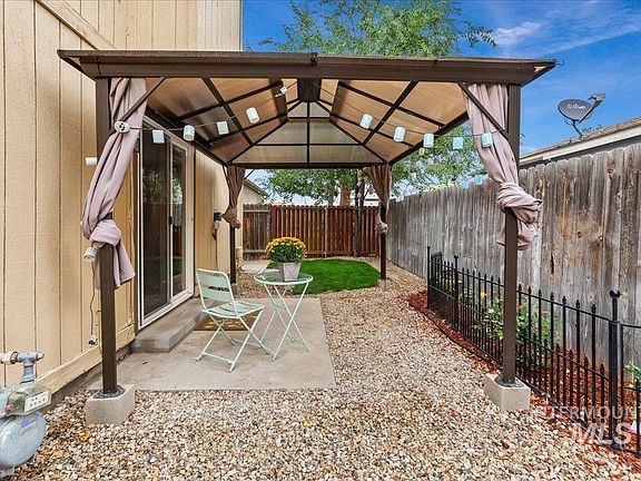 Discover this beautiful townhouse centrally located in Meridian. Walking distance to downtown and minutes to the freeway. Featuring a new roof and new paint, newer carpet, luxury vinyl plank flooring and tile countertops. This home boasts a private backyard, a charming back patio, low maintenance yard with mature trees, and garage. No HOA.