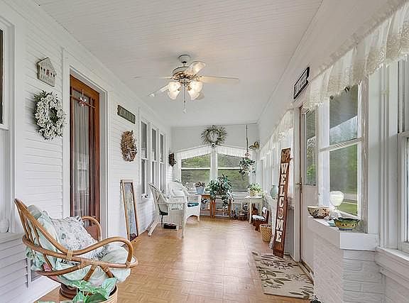 Historic 3 BR Cape Cod on a gorgeous shady nearly 1 acre lot IN TOWN CRETE! Just blocks from antique shops & coffee shops, this spacious well maintained home has been updated w/ modern conveniences (GRANITE counters, NEW ROOF 2012, NEW furnace/Central Air) and yet maintains all the historic charm w/gleaming HARDWOOD FLOORS, ENCLOSED SUN PORCH, crown molding and arched doorways. Spacious kitchen w/ granite counters & large island w/ bar seating. HUGE formal dining room, living room & main floor office w/ HW floors which could easily be converted into a main floor BR if needed. Mature trees, rolling green grass, fenced in yard & even a koi pond allow you to enjoy nature, without losing the "in town" feel. TWO SEPARATE GARAGES = 1.5 car + 3 car w/ full attic storage + alley access/additional parking are a handyman's dream. Large unfinished basement. This home is a spectacular historic treasure!