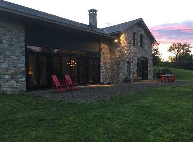 Unique stone barn home. Enjoy peace and solitude on 16 private acres with pond off a beautiful country road. Views are pastoral farmland with mountains beyond. This 3000 Sqft sleek, light and airy home has an open spacious floor plan with 11Ft. ceilings. Great kitchen with Wolf stove and giant Liebherr fridge opens to outside picnic area with wide glass doors. This stone barn home has a large living room/dining room with glass doors/windows and views to the East. Three comfortable bedrooms , a loft and 2.5 baths complete the offering. This is a most idyllic location in the mid-Hudson River Valley. Near parks, rail trail, lakes, skiing and quaint trendy towns of Millerton, Pine Plains, Millbrook and Rhinebeck. 25 Minutes to Wassaic Metro-North station.