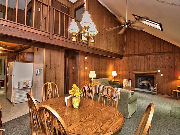 Priced to sell! Check out this 3 bedroom, 2 bath home in a four season amenity filled community in the Northern Poconos, just an hour from the Delaware Water Gap. This home has easy access with just a few steps to get in, a nice front deck, open floor plan, living room fireplace, loft above, bright and cheery four season room, bedroom and laundry on the main level, circular paved driveway, vinyl siding. The amenities include lakes, beaches, pools, clubhouse with restaurant and pub, golf course, ski hill, tennis, indoor recreation complex with tennis/fitness center/arcade and more, basketball courts, ball fields, children's playground, miniature golf, walking trails, arts and crafts, a great recreation program including day camp for kids, campground, 24 hour security, gated access., Beds Description: 2+BED 2nd, Beds Description: 1Bed1st, Baths: 1 Bath Level 1, Baths: 1 Bath Level 2, Eating Area: Dining Area