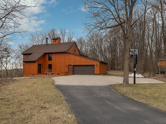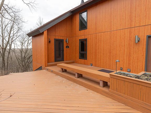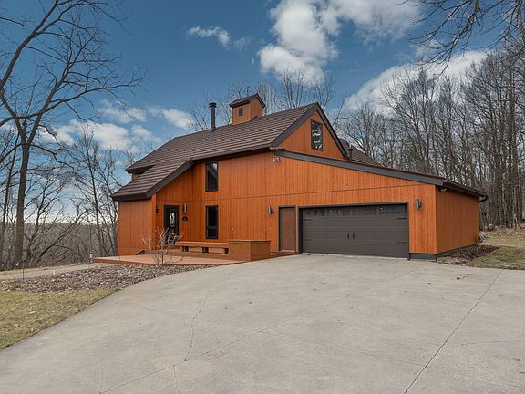 Introducing the property you've been dreaming of a one-of-a-kind retreat nestled on a secluded 6-acre wooded lot encompassing nearly 300 feet of the South Fork of the Zumbro River. This unique home combines the charm of an up north getaway with the comforts of modern living. Step inside to discover an inviting open floor plan that seamlessly connects every space, offering picturesque views from every angle. Gather around the wood-burning fireplace, admire the gleaming hardwood floors, and indulge your culinary passions in the gourmet kitchen featuring custom maple cabinets. Upstairs, the master suite awaits with its built-in closet storage and a luxurious bath, Downstairs, two additional bedrooms, one with direct access to a deck, a spacious family room with another fireplace and a walk-in sauna. The outdoors on this heavily wooded site includes multiple decks, detached garage, cooled cider shed, brick patio with built-in pizza oven and blacktop access. Pre-inspected with warranty.