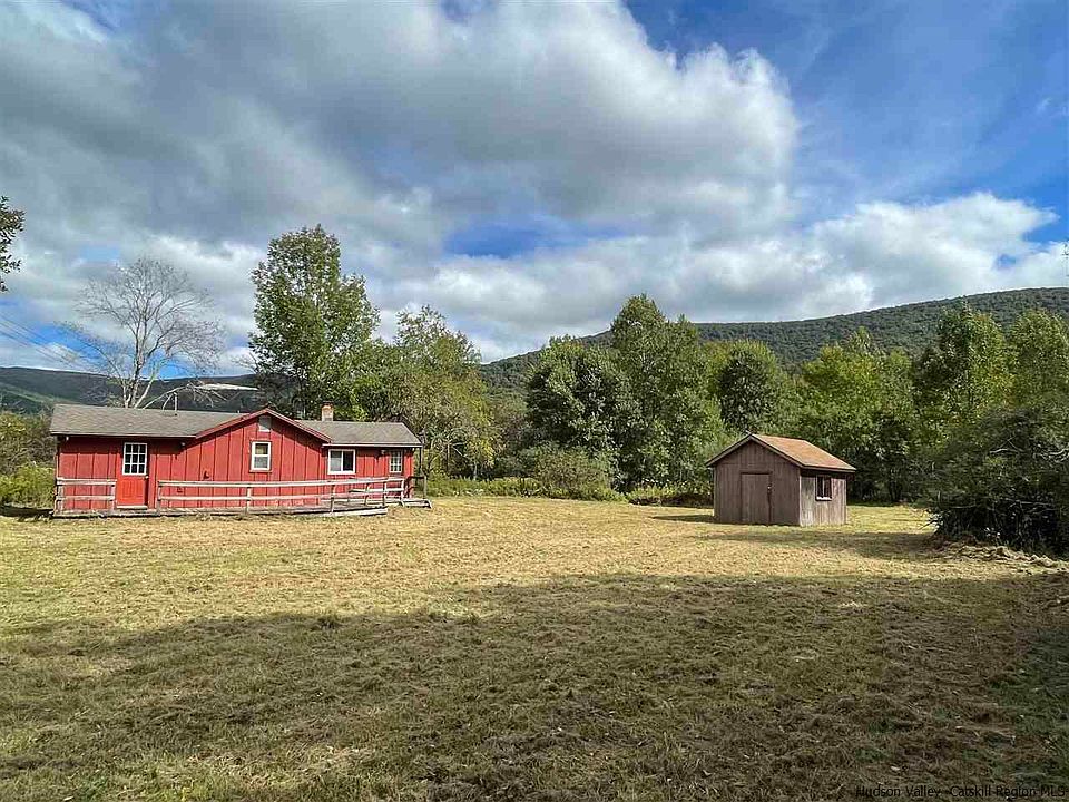 STREAM-SIDE CABIN! Situated in the idyllic DENVER VEGA VALLEY you can enjoy the sound of the rushing BATAVIA KILL STREAM right on your property or jump in to cool off on a warm day. Take in the BEAUTIFUL MOUNTAIN VIEWS and go apple picking in your own yard! QUIET AND TRANQUIL, BORDERED BY NYC FOREVER WILD LAND this property is truly special. Yes... be prepared to do some work but what a cutie! EXPOSED BEAMS, STONE FIREPLACE, a sweet eat-in kitchen and light-filed rooms! Property also includes a wood storage shed. This adorable home is the perfect place to escape and recharge. Would also make a great AirBnB. Close to all area attractions including ski resorts, golf, kayaking, hiking, farm markets, restaurants and more. Close to the Villages of Roxbury and Margaretville. 2.5 hours from the GWB. YOUR CATSKILL DREAM AWAITS