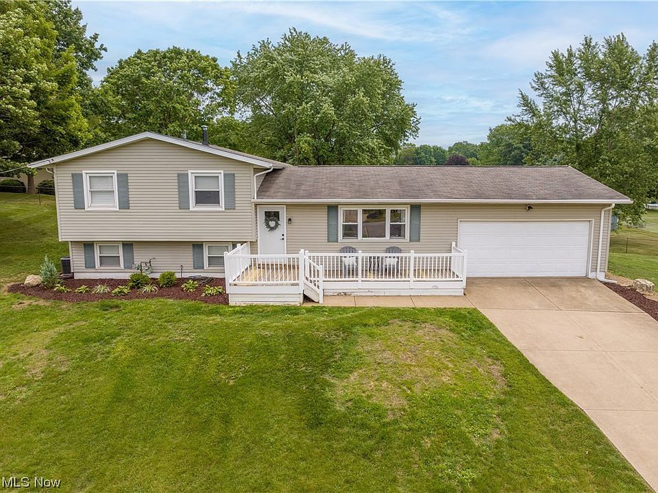 Welcome to this updated split-level home nestled on a picturesque hillside. Located in a secluded cul-de-sac, this stunning property offers three bedrooms, one bathroom, and a range of attractive features that will captivate any potential buyer. As you step into this home, you'll immediately notice the meticulous attention to detail and beautiful finishes throughout. The kitchen has been updated with new appliances, laminate flooring, a new sink, and a faucet. The adjacent dining area offers ample space for a large dining table, perfect for hosting dinner parties or family gatherings. The upper level of the home boasts three well-appointed bedrooms, each offering new carpet, paint, and light fixtures. The shared bathroom has been completely remodeled adding a touch of luxury to your daily routine. One of the highlights of this property is the brand-new deck, which serves as an outdoor oasis for relaxation and entertainment. Whether it's enjoying your morning coffee or hosting a barbecu