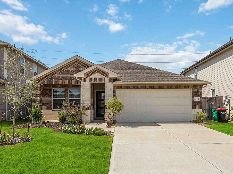This Beautiful 1-story open concept home comes with 3 Bedrooms, 2 Baths, an Office/Study, and a 2-car Garage! This home also features a beautiful Chef's Kitchen with Designer Kitchen Shaker Cabinetry, a Large Kitchen Island, a Walk-In Pantry! Upgraded tiles and accent wall in the living room and hallways. The Primary Bedroom, Primary Bath with a standing shower and a separate tub. Everywhere you look, there are custom touches that make this home uniquely yours. Located in a great Fort Bend ISD school district. Just 8 minutes to Fort Bend Toll Road and 10 minutes to Hwy 288. Easy access to the Houston Medical Center, the Galleria, and Freeport. WASHER, DRYER & Refrigerator included