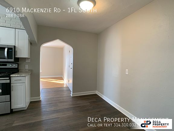 This 900 square foot apartment home has 2 bedrooms and 1.0 bathrooms. This home is located at 6910 Mackenzie Rd APT 1, Saint Louis, MO 63123.