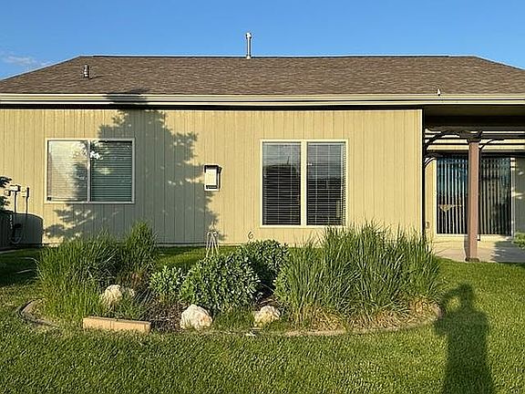 Wonderful space with open kitchen to living room, 2 bedroom, 2 bath plus back patio with pergola included for shade and privacy. Beautiful wide open kitchen with quartz countertops, center island and stainless steel appliances opens to dining space with lots of natural light and living room featuring a gas fireplace with decorative finish and vaulted ceiling. Primary bedroom boasts a large walk-in closet and en-suite bathroom with a double vanity and walk-in shower including bench seat. Second bedroom is perfect for a guest room or office. Lovely welcoming entry with front covered porch and spacious two car garage with ample room for storage. All window coverings and appliances stay including washer and dryer. Updates include the following: Professionally landscaped in 2015, air conditioner replaced in 2019, roof replaced in 2020, new carpet in 2021 and new refrigerator in 2023. HOA benefits include lawn care, snow removal and trash removal. This lovely, well-cared for home is located on a corner lot in a cul-de-sac with wonderful neighbors in a quiet neighborhood.
