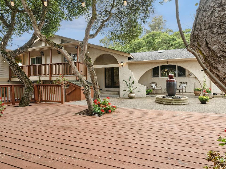 Beautiful, sophisticated, and private country home boasts a Tri-Level floor plan laundry room, recessed lighting, tiled family room with fireplace and fireplace insert, built-in entertainment center & media equipment closet. Beautiful and secluded 1 acre parcel with majestic oak trees, decks with breathtaking views, Koi pond, courtyard with hot tub, fire pit, entertainment areas, storage/workshop, and lower level open space with mini barn and much more.
