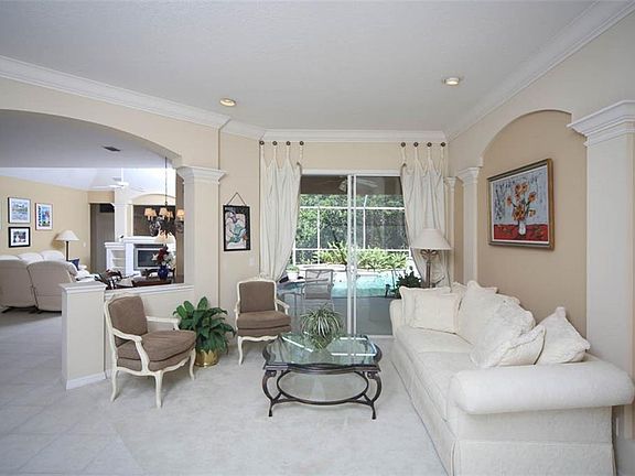 FURNISHED EXECUTIVE RENTAL HOME. Located in Treymore at the Village, three bedrooms, three full baths, and a wonderfully outfitted office space featuring many built ins and a lovely garden view. This former model home has all the bells and whistles anyone would need! Upon entering you have a formal living and dining area, expansive kitchen with gas cooktop, center island, tons of storage throughout, cozy family room and an outdoor area that features a sparkling pool and spa surrounded by lush landscaping. The Master Bedroom features a huge walk in closet, King bed and opens onto the Lanai, the master bath has dual sinks, a soaking tub and separate shower. The second bedroom has a queen bed and the third bedroom offers twin beds. The attached three car garage has plenty of room for all your toys, including your golf cart. This convenient location is just minutes from the Sarasota/Bradenton International Airport, the new UTC Shopping Center and Benderson Park where you can watch world class rowing. The Palm Aire Country Club offers many membership options, golf and tennis as well as a social membership. Don't forget the many cultural venues that downtown Sarasota offers, in addition to our beautiful beaches. Welcome to Paradise!