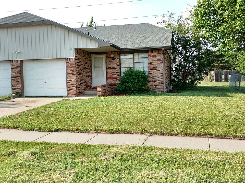 This 3 bedroom, 2 bath duplex is clean, updated, and ready to move in to. Appliances included (dishwasher, fridge, oven) and washer and dryer hookups in the basement. Finished basement has a large family room and bedroom with daylight windows and a bathroom, as well as a large storage room. Neighborhood amenities include walking paths, playground, and pool access during the summer. House is close to the busy intersection of Maple and Ridge, with easy access to Kellogg. Wichita schools. Spacious and clean home in good area. No pets. Rent is $850 a month with $850 deposit. Tenant is responsible for lawn mowing, trash, water, gas and electric