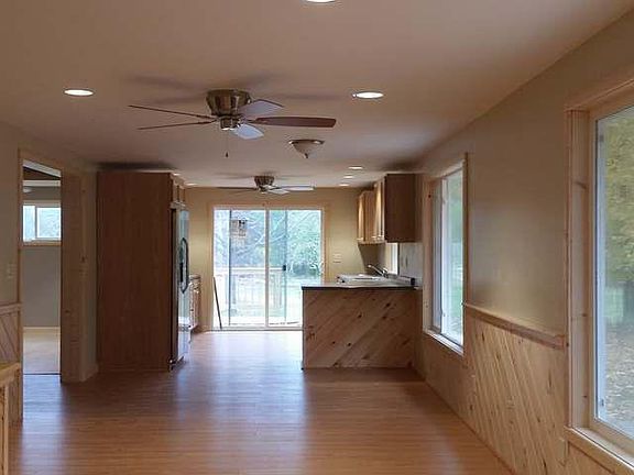 NEW, NEW, NEW! This home was completely gutted and redone in 2014. A ranch style home that offers an open living/dining/kitchen area, main level master suite, main level laundry, laminate wood and tile floors throughout, finished lower level, rec room area and attached garage. Everything is new right down to the drywall and including a new septic, well, roof, gutters, windows, appliances, bathrooms, doors, fixtures, etc! The home sits on wooded lot with an abundance of fruit trees to attract the wild life. Additional land is available!!! Snowmobile or ATV from your door. Walk to town or to the schools and public beach.