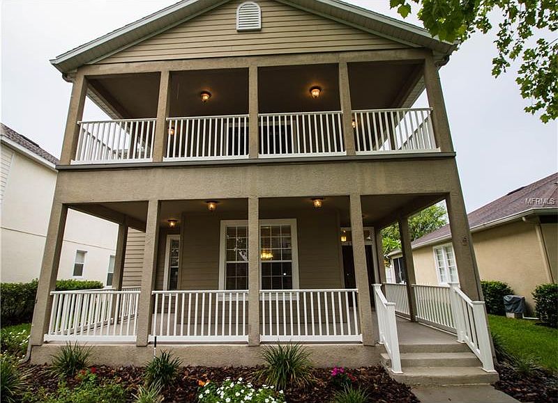 Welcome home to the wonderful community of Harmony. This lovely 3 bedroom, 3 bathroom home features a kitchen with upgraded granite counter tops and stainless steel appliances. All three bathrooms have also been upgraded with granite counter tops as well. A large front porch downstairs as well as a balcony upstairs, and a screened in pool area perfect for entertaining. The yard is fenced in as well, perfect for pets or children at play! The Harmony community is desirable for all family members, with A-graded Harmony Community School, a golf course, community pools, parks throughout the neighborhood, dog parks, and a town square complete with a grocery store, doctors office, and restaurants. You never have to leave home!