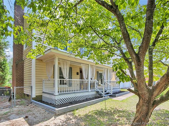 Lovely 3 bedroom, 2.5 bathroom home tucked in a convenient Fayetteville neighborhood. The front porch is the perfect touch for some southern curb appeal. Enter the home through the lovely front door. To the left you have the spacious living room with fireplace. To the right you have the formal dining room or formal living. The kitchen features lovely butcher block counters, white cabinets, stainless steel appliances and an island. The kitchen sink has a water filtration device installed. Down the hall you'll find the laundry area and the half bath on the way to the large garage. Upstairs you have two bedroom and the primary suite. The primary suite has a walk in closet with built ins. The open concept primary bathroom is stunning with a large tile shower featuring multiple rain shower heads, separate bathtub, lovely dual vanity sinks. Exit through the kitchen French doors to the deck, concrete patio surrounding the fire pit, and lush fenced in backyard.