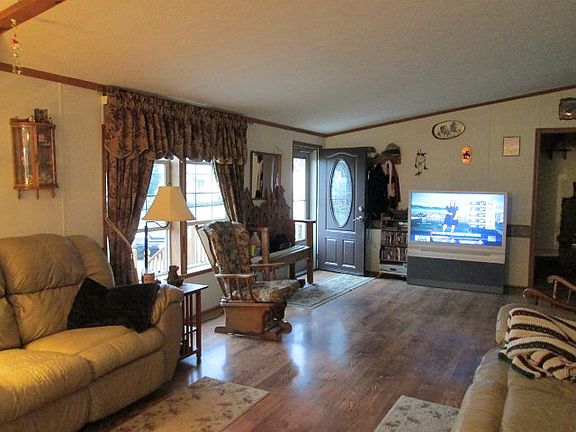 SPACIOUS 3 BD, 2 Bath double wide sitting on 1.5 acres just outside Bath village limits. No village tax but enjoy municipal electric. This triple lot offers you a shed & covered carport, open front & back decks, fenced in 1 acre back yard. Extra cement slab w/elec service to allow for motor or mobile home hook up. New septic; drilled well; 16 x 21 shed w/electric! Large gas fireplace, kitchen island w/stools, pantry & sky lights, utility room. Well insulated walls & ceilings. Master bedroom w/shower, garden tub, double sinks & walk in closet! Central Air! Close to shopping & I-86!