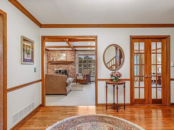 Perfectly set on a waterfront lot and situated in the desirable Dells of Bittersweet in Southwest Allen County, this transitional beauty feels like home the minute you pull up. Once inside, you will discover a world of sophistication with hardwood floors, rich natural wood accents and modern upgrades throughout. This 4 bedroom, 4 bath, 3,800 sq.ft. home is spacious and accommodating with a large home office, a cozy reading room (or an additional home office), a formal dining room and the most charming 3-season sunroom w/captivating water views. The living room is warm and inviting, centered by a floor-to-ceiling brick fireplace flanked by windows flooding the space with sunlight, coffered ceilings and custom built-ins. A beautifully upgraded kitchen is the heart of the home, with a custom center island, granite countertops, a fleet of high-end stainless appliances and a corner breakfast nook with built-in bench seating. Upstairs, you'll find the primary en-suite w/walk-in closet and fabulous bath w/large jetted tub, dual vanities & heated tile flooring, three sizable bedrooms, ample closets and a freshly updated full bath. Make your way to the daylight lower level, complete with a wet bar, tastefully remodeled full bath, multi-use rec room, an over-sized storage room and a comfortable family room. Impeccable maintenance is evident w/many recent updates & upgrades: Remodeled full bathrooms w/luxe finishes 2021; New Water Heater 2021; Buescher Homes Remodel LR/Kitchen 2020; All new windows in 3-season room 2020; Many newer windows throughout; New wood blinds/plantation shutters 2020; Exterior Paint 2019; Trex Deck 2019; New roof 2018. A delightful oasis awaits you in the backyard space w/walking trails, lush landscape and tranquil pond views.