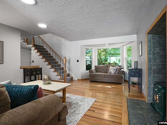 Country feel and desirable South Salem location, all in one! Upstairs features a beautifully remodeled master suite w/a separate balcony, soaking tub & a beautiful walk-in shower & a second bedroom. Downstairs features a living room & large kitchen/dining combination area, 2 additional bedrooms, newer carpet throughout, a large addition w/vaulted ceilings, a separate living room & sitting area w/gas fireplace. Outside features a garden, separate small shop, mature trees/landscaping & so much more!