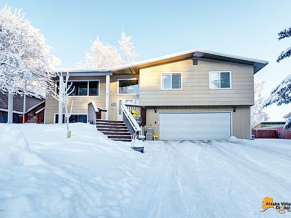 Meticulously maintained home in quiet, established neighborhood. Property boasts very large, fenced yard with mature trees; New SS appliances, paint and flooring (2016), furnace (2015), washer & dryer (2018), Trex front porch (2015); updated bathrooms; Mountain views, and is minutes from Cheney Lake and the Chester Creek trail system. Centrally located near JBER and Tikahtnu. BTV all.