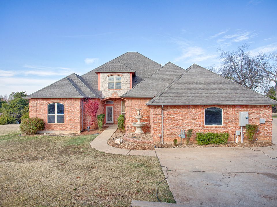 AN ENTERTAINERS DREAM HOME! This BEAUTIFUL home on one acre sits on a breath taking lake lot in NW OKC. With over 4,000 SF and amazing open floor plan, this home is dominated by beautiful volume ceilings throughout. Enjoy the oversized kitchen, which features granite counter tops, stainless custom refrigerator and built in wine cooler. The home features a huge theatre/family room with wet bar. Sprawling entertaining spaces flow outside, with a large deck, swimming pool, dedicated outdoor bathroom and incredible lake views. (fishing and paddle boats permitted on lake) Other features include, security cameras, electronic door keypad, built-ins, large bedrooms and huge utility room that can be used as an exercise room. Don't miss the opportunity to own this incredible home at a great price!