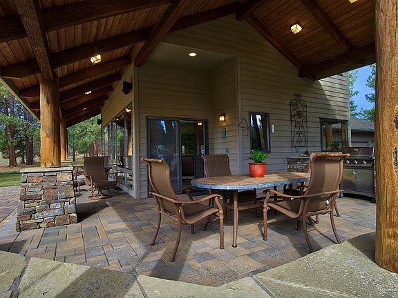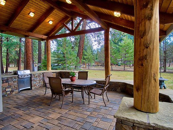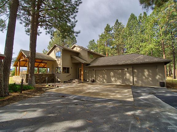 A comfortable 2742 square foot home located on 3.23 acres. Views of the Cascade Mountains. Hidden, private and quiet, and less than a mile from downtown Sisters. A two-story home with 2.5 baths, the master is on the main level, additional three bedrooms upstairs. The kitchen and bathrooms were recently and beautifully updated. Natural wood floors and tile accents. An added feature is the 780 square foot covered porch with natural pavers, rock walls, a seated built-in barbecue and refrigerator.