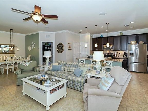 Built in 2014, this 1-story home comes complete with 3 bedrooms, 2 baths, office/den, roomy 2-car garage, spacious open-concept design and neutral-colored walls and floors that will fit perfectly with any style or décor! The beautiful kitchen is any home-chef's dream, with ample granite counter space, dark wood cabinetry featuring pullout shelving for those pesky, hard-to-reach places, a long island made for entertaining, stainless appliances, and a nice-sized pantry for storage. The living and dining area exude a roomy yet cozy feel, perfect for entertaining company or just lounging around on a Sunday afternoon. The large owners' suite features beautiful crown molding, and an impressive walk-in closet with enough space for him and her. Looking forward to relaxing and de-stressing after a particularly hard day? No worries! Just slip into your bathing suit, pour yourself a drink, and take a soak in the lux Jacuzzi out on the screen-covered lanai, as the spa comes with this beautiful home! Also on the lanai, you will find an abundant amount of room for gardening, entertaining, and relaxing--all activities you can partake in without worrying about those pesky Florida bugs. The yard surrounding the home is much like the inside when it comes to the amount of upgrades that were completed. Low maintenance plants and trees offer great curb appeal, along with the upgraded driveway pavers, installed curbing and edging, and upgraded gutters to keep up with the rainy season.