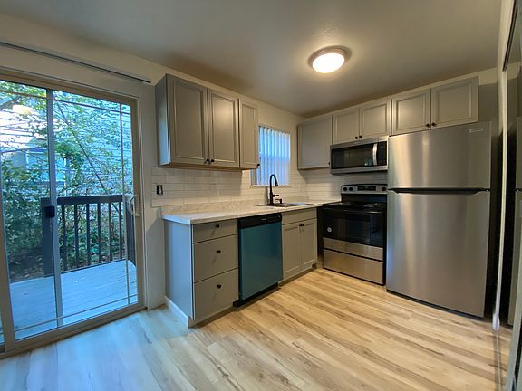 Spacious town home located in the lovely St. John's neighborhood of North Portland! Less than 10 minutes from University of Portland and right around the corner from Cathedral Park. This home is recently renovated and features up-to-date appliances, cabinetry, vinyl flooring throughout, electric fireplace, and in-unit washer/dryer. Reserved parking spaces and garages available to lease! 12-month lease term at minimum, but shorter lease terms may be available for a premium.