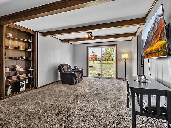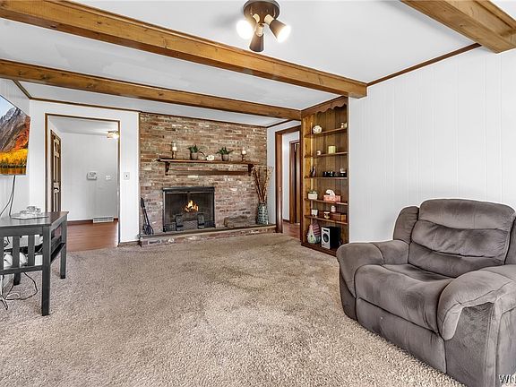 Three bedroom, two full bath ranch on almost an Acre of land just listed in Pendleton, Starpoint Schools. This move in ready home has everything on your buyer's wish list! Tucked away on a quiet cul-de-sac street this peaceful setting is a great retreat at the end of a busy day, but just minutes to Transit Rd and the 990. The updated kitchen features brand-new butcher-block countertops and a white quartz sink. The primary bedroom features an updated ensuite with a beautifully tiled shower. Enjoy your morning coffee on the front porch, or back patio overlooking the yard with no rear neighbors. On a cooler evening you'll enjoy the woodburning fireplace in the den. Spacious attached two car garage and expansive shed in the backyard provides plenty of space for your vehicles, lawn equipment and toys! The 1700 sq foot basement also has endless possibilities to be finished or provides extra storage. Showings start right away and Open Houses will be held Saturday Oct. 28th 11a-1pm and Sunday Oct. 29th 1-3pm. Delayed negotiations until Tuesday October 31st 12pm.