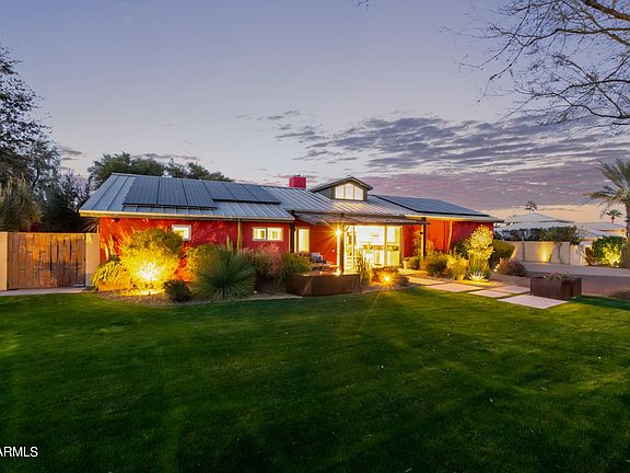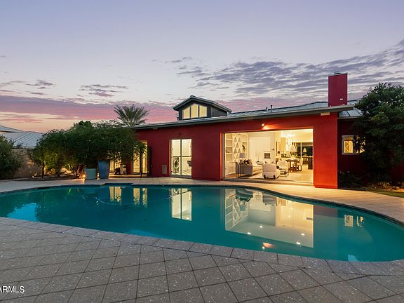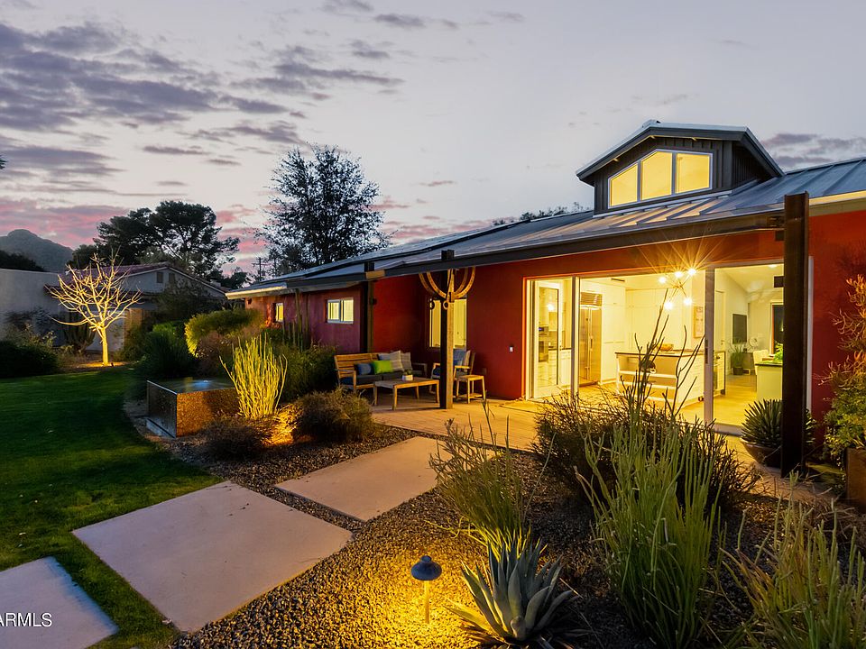 LOCATED in the heart of the highly desired Paradise Valley/Scottsdale area. Close proximity to the Scottsdale Fashion Square Mall, fine dining, and Old Town Scottsdale area. Camelback mountain trails are at the end of the street. This home is rare at only 11 years young and was designed by famed designer, Cathy Hayes/Hayes Inc Architecture Interiors. This modern single level beauty was featured in Houzz and AZ Cool Homes. The main house with 4 bedrooms, each with an attached bathroom, 4 bathrooms! The master suite gives you all the spa vibes with a glass wall that allows both privacy and natural light. There is a separate soaking tub and extra-large shower. You can walk out from the master slider and go straight to the hot tub and enjoy a quiet evening. Another master bedroom.... The split bedroom, min master or mother in law suite also has its own small patio. The ambiance is amazing and allows for you to soak in the natural light from the dormers placed throughout. Office area is large and offers additional storage. An adorable guest casita was recently built and offers a kitchenette and bath. The backyard is inviting with a pool, fireplace and gathering area with shade and citrus trees. No HOA in this neighborhood. Home like this can't be built for this price, why waste time building. A perfect charming location surrounded by spas, restaurants, shopping and hiking biking trails.