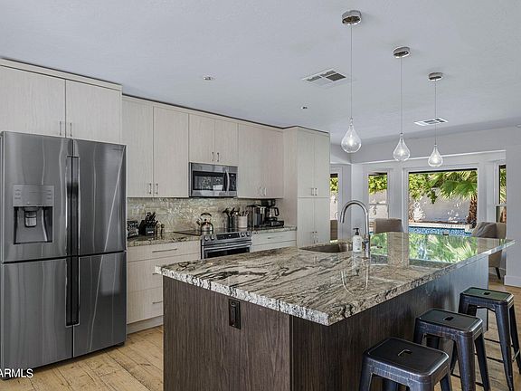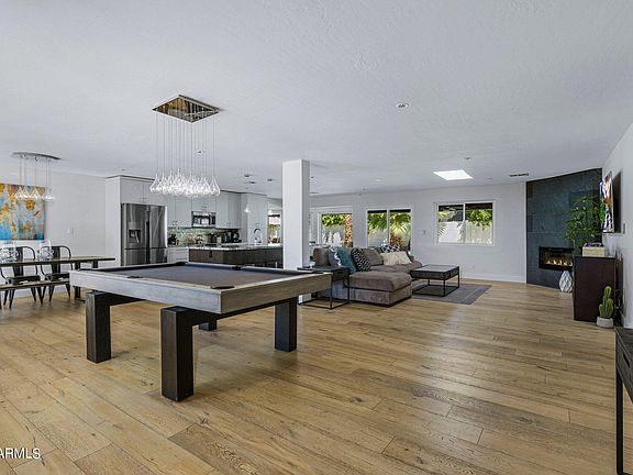 A home that truly checks all the boxes, surrounded by the best dining, shopping, golf & hiking Scottsdale has to offer! Featuring 4 bedrooms, 2 bathrooms, engineered hardwood flooring, modern light fixtures, and a floor to ceiling tiled fireplace in the living room. The stunning kitchen has imported custom cabinetry, granite countertops, a unique sandstone backsplash, and SS appliances. You'll love the spacious open concept floor plan filled with natural light from large dual pane windows and skylights, plus the recently replaced roof & A/C. The north facing lush backyard paradise boasts a heated pebble tech diving pool with baja step & smart phone control capability surrounded by travertine pavers, and a huge putting green. All beautifully lit at night w/ LED landscape lighting!