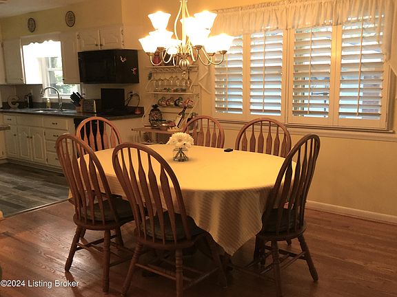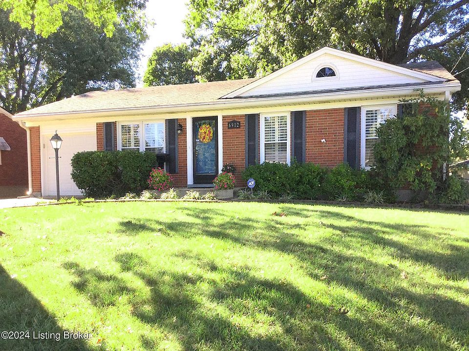 Welcome to 6912 Green Manor Dr. Lou, KY 40228. Come tour this delightful brick ranch! This charming home boasts 3 bedrooms and 1 full bath plus 1 half bath. Step into a cozy living room featuring beautiful hardwood floors. The eat-in kitchen offers hardwood flooring, a breakfast bar, stainless steel appliances, Corian countertops, and a spacious walk-in pantry. Plantation shutters enhance the appeal throughout. The partially finished basement includes a family room and bar area, perfect for entertaining. You'll find ample storage in the basement, plus a storm cellar. A 2 ½ car detached garage is sure to impress with its abundant storage and covered patio space. Updates: Termite Treatment and Radon Mitigation System has been completed as of OCT 2024. The huge backyard, almost 1/3 of an acre, is a gardner's dream and has plenty of space for plantings or a small vegetable garden.