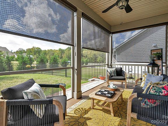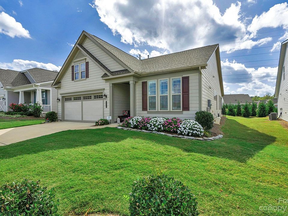 Welcome to Cresswind! Pristine & Perfect! Desirable Ashford Plan w/many Custom upgrades! Spacious 2 Bedroom, single-story home in Cresswind Charlotte's Resort-Style 55+ Community. All Living areas feature Luxury Vinyl Plank flooring. boasts spacious all White Kitchen w/Modern Granite countertops, Upgraded Cabinetry, GE Stainless Steel Appliances & Island/Breakfast bar. Pretty Plantation shutters on Kit windows! Granite counter Pass-thru from Kit to Dining Rm! Open & spacious Great Rm w/Gas Fireplace as your focal point! Open Corner area perfect for your home Office. The Primary ensuite has Tray Ceiling, Ceiling Fan & High Windows. Generous Primary Bath features tiled floors, "His & Her Dual vanities w/sinks. 2 walk-in closets & Large frameless glass shower w/bench. Fantastic Spacious Screened Porch with custom Shades & Ceiling Fan! Enlarged stamped Patio overlooks your Fenced yard & wooded back area. Beautiful, move in ready Home. Pleasure to show!