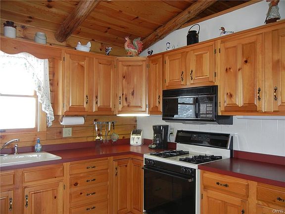 TURN KEY! Move right into this furnished, cozy log home. Vaulted ceilings in the living room and kitchen, with an open floor concept, allows for a spacious living. Located on 23 acres of spectacular land, with a 2.5 acre pond, this property backs up to hundreds of acres of state land , and is on the snowmobile trail system, this well kept home is a rare find. With a total of 4 garage stalls, 3 car detached and 1 car under house , there is plenty of room to store your toys and vehicles. The views from the open porch are outstanding. An outdoor enthusiast would love this location. Its year around, roads are plowed in the winter, 4G cellular coverage, and very efficient to heat. A 12 ft jon boat and lawn mower are even included in the sale. Don't hesitate to call. An absolute must see.