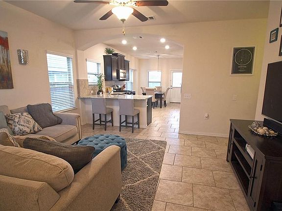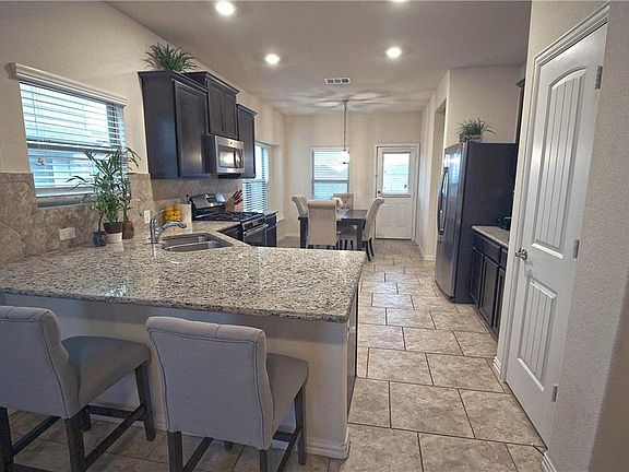 This inviting one story located in Austin's premier solar community, Colorado Crossing is minutes from downtown and Tesla Gigafactory. The home offers a bright open floor plan with granite counters, tile backsplash, breakfast bar, and tile floors in kitchen/living areas. Entertain under your covered back patio and large back yard with no immediate rear neighbor.