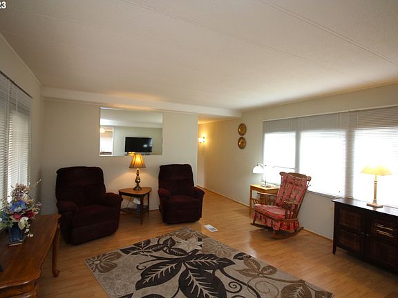 Affordable Living in Family Park Near Ocean Beaches and the Oregon Coast Sand Dunes! 2 bedroom 1 bath home with covered porch. Open concept Kitchen & dining area with pantry. Updated flooring, new furnace & Hot water heater. Fenced yard for small pet, raised garden beds, tool shed & storage room. Current Space rent is $400.