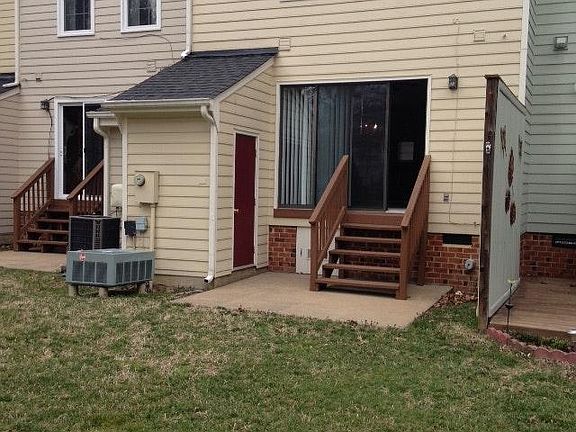 This 2 Level Townhome has features 2 Bedrooms and 1-1/2 Baths. Free Off Street Parking and Exterior Lawn-care Maintenance done by HOA and paid by owner. Rear Storage Shed and Patio. The Eat In Kitchen features a Refrigerator, Dishwasher, Range/Oven. A Breakfast Bar for added Seating Room and Entertaining in the Large Great Living Room with a Wood Burning Fireplace and Sliding Rear Door to the Patio. A 1st floor Half Bath off the Living Room and an Additional Full Bath on the 2nd Level which adjoins one of the 2 Spacious Bedrooms upstairs. Stacked Washer and Dryer on the 2nd Level. Well Maintained Property and ready for you to move in. Trash and Recycling included in rent. No pets allowed. Call to schedule a showing at 804-334-7811. A Non-Refundable application fee of $75 is required per applicant/occupant 18 years and older. Credit, Rental, Employment and Background is also verified per applicant. NO PETS ALLOWED.